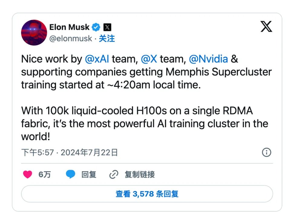 (馬斯克此前在X上宣布啟用10萬卡規(guī)模的孟菲斯超級(jí)集群)