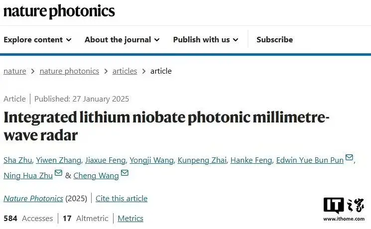 IT之家查詢獲悉,該團(tuán)隊(duì)所研發(fā)的集成光子毫米波雷達(dá)芯片于 2025 年 1 月 27 日在 Nature Photonics 期刊在線發(fā)表。此項(xiàng)創(chuàng)新成果成功打破了片上光子雷達(dá)在頻率與帶寬上的限制,是光子雷達(dá)技術(shù)發(fā)展道路上的重要里程碑。
