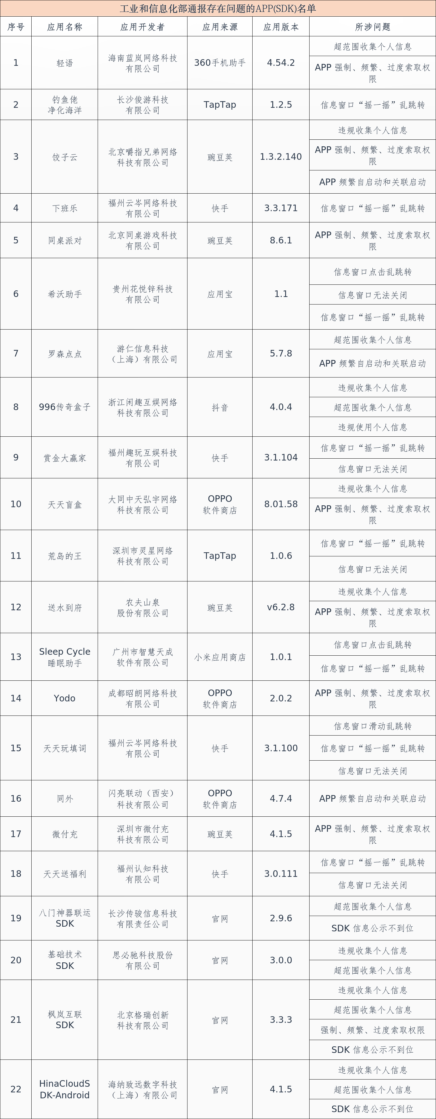 工信部通報(bào)22款A(yù)PP(SDK)侵害用戶(hù)權(quán)益