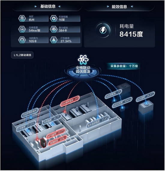 l 算液聯動尋優:實時分析智算集群系統功率和室外環境變化,精準尋找最優制冷工況點,智能調節冷塔風扇頻率、水泵工作頻率、閥門開度等參數,降低液冷系統功耗,為 AI持續訓推場景提供恒溫、低耗的運行環境。