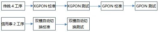 極限優(yōu)化:產(chǎn)線生產(chǎn)工藝流程成熟以后,甚至可進一步合并為1工序完成XGPON&GPON雙模校準&測試