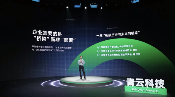 面對企業客戶的現實需求,青云給出的轉型答案是架設一座銜接歷史與未來的橋梁。它能夠兼容存量架構,保護既有投資,又能全面支持未來持續演進的AI需求,還能確保業務轉型中的平滑性和穩定性。