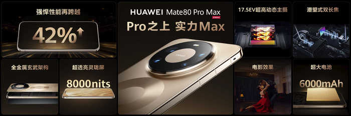 華為常務董事、產品投資委員會主任、終端BG董事長余承東表示:“Mate 80系列實現了設計、屏幕、性能、影像體驗的跨越式提升,產品力全方位的突破。實力破圈,開啟新篇!”
