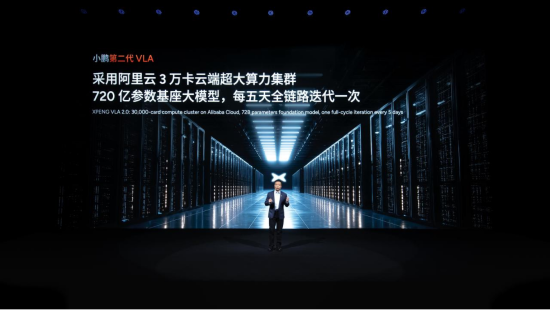這種顛覆背后,是 “大算力 + 大數據” 的雙重支撐。小鵬的 3 萬卡云端算力集群常年保持 90% 以上運行效率,720 億參數的基座模型每五天就能完成一次全鏈路迭代;訓練數據更夸張:近 1 億 clips(片段)的真實駕駛視頻,無需人工標注,覆蓋的極限場景相當于人類司機連續開 6.5 萬年才能遇到。“它不僅能執行動作,還能理解物理世界規律,甚至推演未來場景。” 何小鵬解釋,比如遇到突發的路口加塞,系統能提前預判對方軌跡,而不是等發生后再反應。