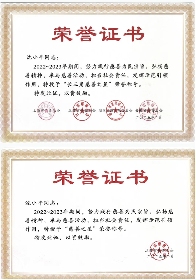 蟬聯三屆!沈小平再獲“長三角慈善之星”及“江蘇慈善之星”榮譽稱號