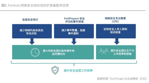 培訓與準備服務:FortiPrepare和FortiResponse等提供了豐富的主動安全防護與服務選項,助力用戶主動評估并優化其安全態勢,員工惡意鏈接點擊率降低84%,安全團隊入職培訓時間顯著縮短。