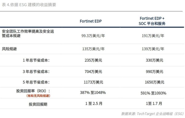 據ESG的詳盡分析顯示,Fortinet安全運營解決方案在以下三大關鍵領域——早期檢測和預防(EDP)、SOC平臺與服務、網絡安全培訓及相關準備中,為用戶帶來了顯著的成本節約與經濟效益。