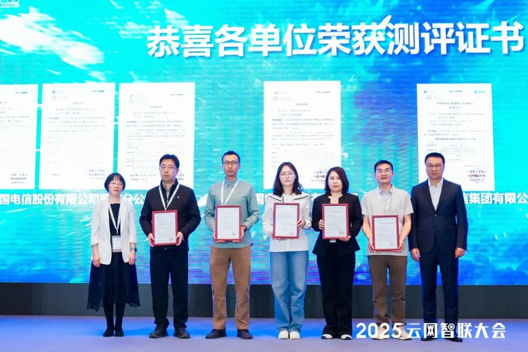 與此同時,中國信通院技術與標準研究所所長張海懿女士、CCSATC610推委會副主席黃河先生共同為通過“自智網絡領航者計劃”測評的產品和解決方案向包括中國電信、中國聯通、重慶電信、華為、新華三等運營商和設備商頒發了測評證書。