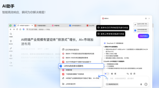 無需跳轉頁面,用戶可在任意網頁中一鍵喚起,快速提問分析內容。作為集搜索與助手常用能力于一體的輕量工具,“問問納米”讓 AI 真正融入日常瀏覽流程,隨時響應、高效協作。