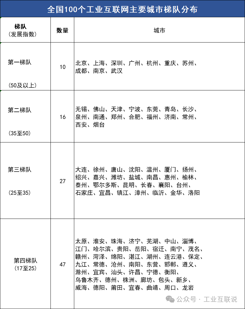 日前,中國工業互聯網研究院發布了《全國主要城市工業互聯網發展指數報告》,對全國主要城市的工業互聯網發展情況進行深入剖析。按照指數大小分布特征,全國100個主要城市可以分為四個梯隊。