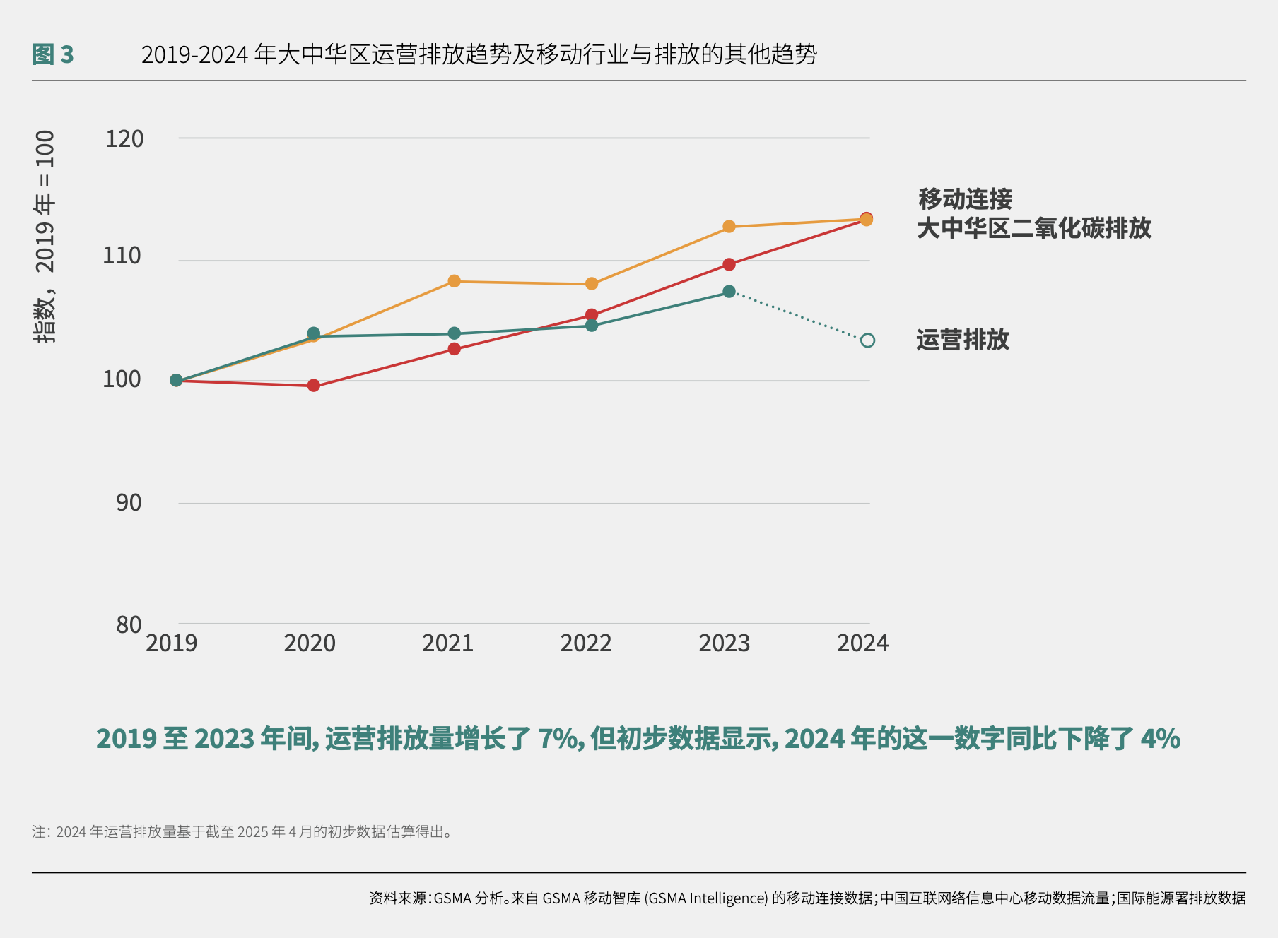6月18日,GSMA發(fā)布《移動凈零排放:大中華區(qū)》報告,其中顯示盡管自2019年以來中國移動數(shù)據(jù)流量增長近四倍,但得益于能源效率提升和可再生能源使用比例增加,中國移動運(yùn)營商在2024年首次實(shí)現(xiàn)運(yùn)營碳排放同比下降。