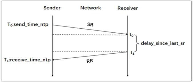 RTT = receive time ntp - send time ntp - delay_since last srt