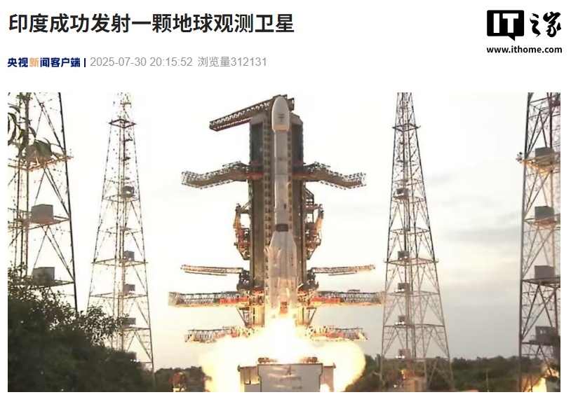 7 月 30 日消息,據(jù)央視新聞報道,當(dāng)?shù)貢r間 7 月 30 日下午,印度成功發(fā)射一顆地球觀測衛(wèi)星。