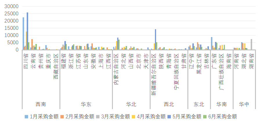 圖4:各省2025年1-6月采購金額統計(單位:萬元)