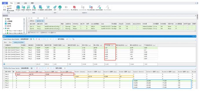啟動Qbv流量后,測試儀將在設(shè)定的基準(zhǔn)時間到達(dá)后開始發(fā)送流量。通過查看測試儀提供的詳細(xì)統(tǒng)計信息,可進(jìn)行如下分析: