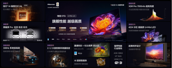 價格方面,U7S Pro提供75、85和100英寸三個版本,首發價分別為15999元、19999元和28999元,預售期間預存1000元可抵2000元,并可疊加國家能效補貼。E8S Pro于9月26日開啟預約,10月中旬啟動預售,購機用戶可享受立減券與定金福利。E7Q系列覆蓋65至100英寸,首發價7999元起,購機即有機會獲贈Mini LED顯示器與游戲手柄等禮品。